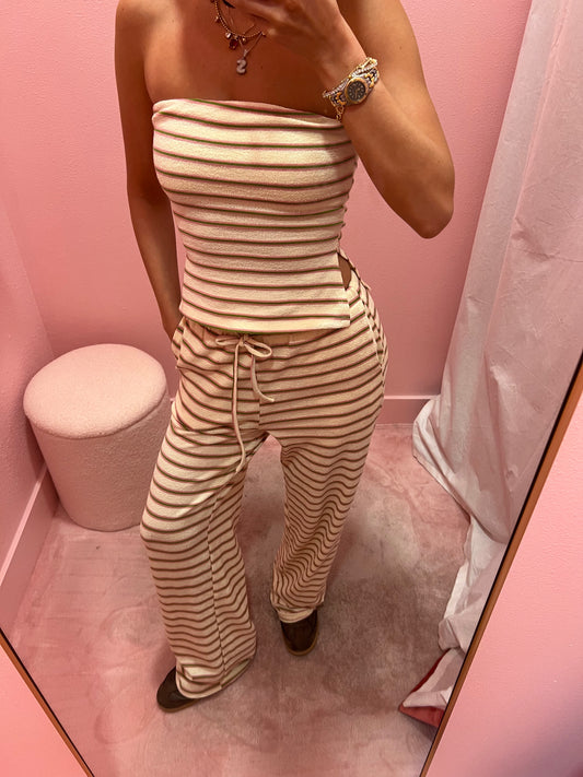 Kalani Striped Drawstring Wide Leg Pants - cream