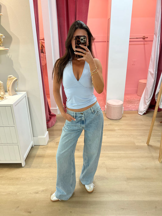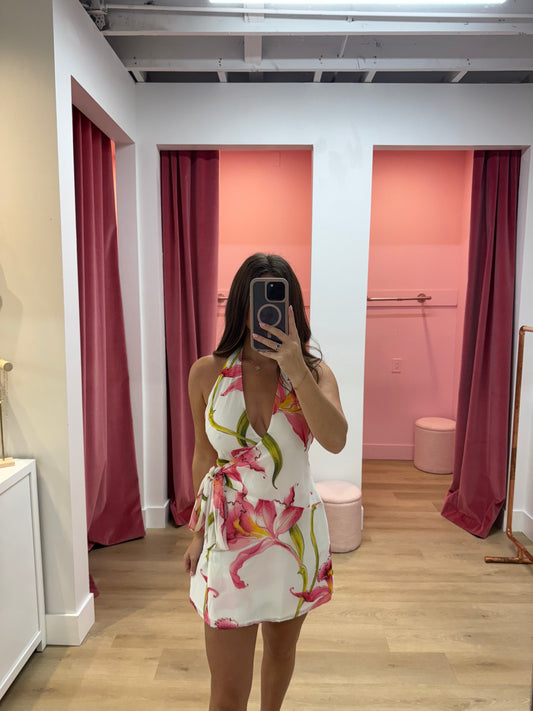 ZIA HALTER FAUX WRAP MINI DRESS - CELINA PINK