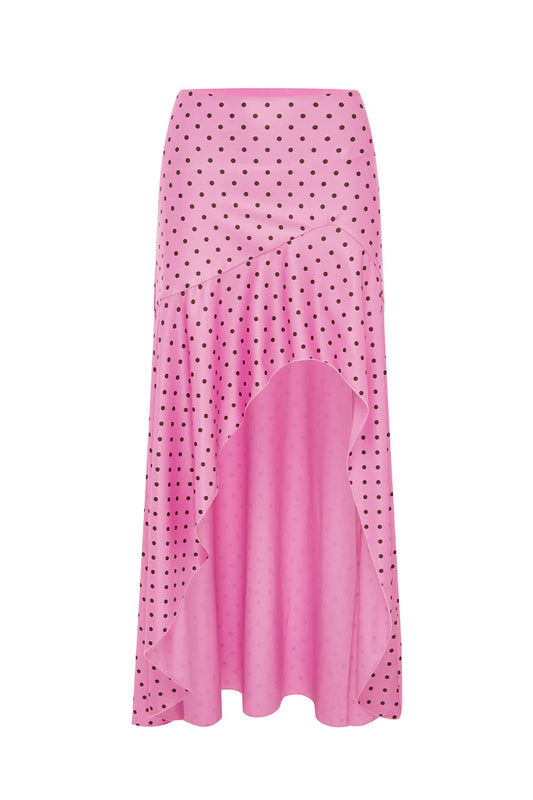 Evermore FLOUNCE MIDI SKIRT - MUSK/CHOC POLKA