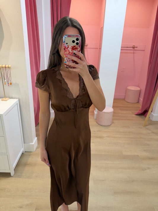 Vivi Lace Trim Satin Midi Dress