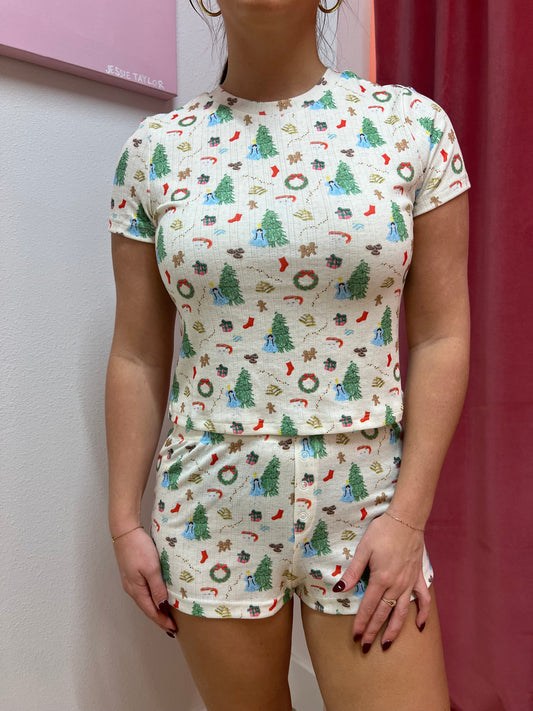 Kringle Holiday Print Cropped Tee