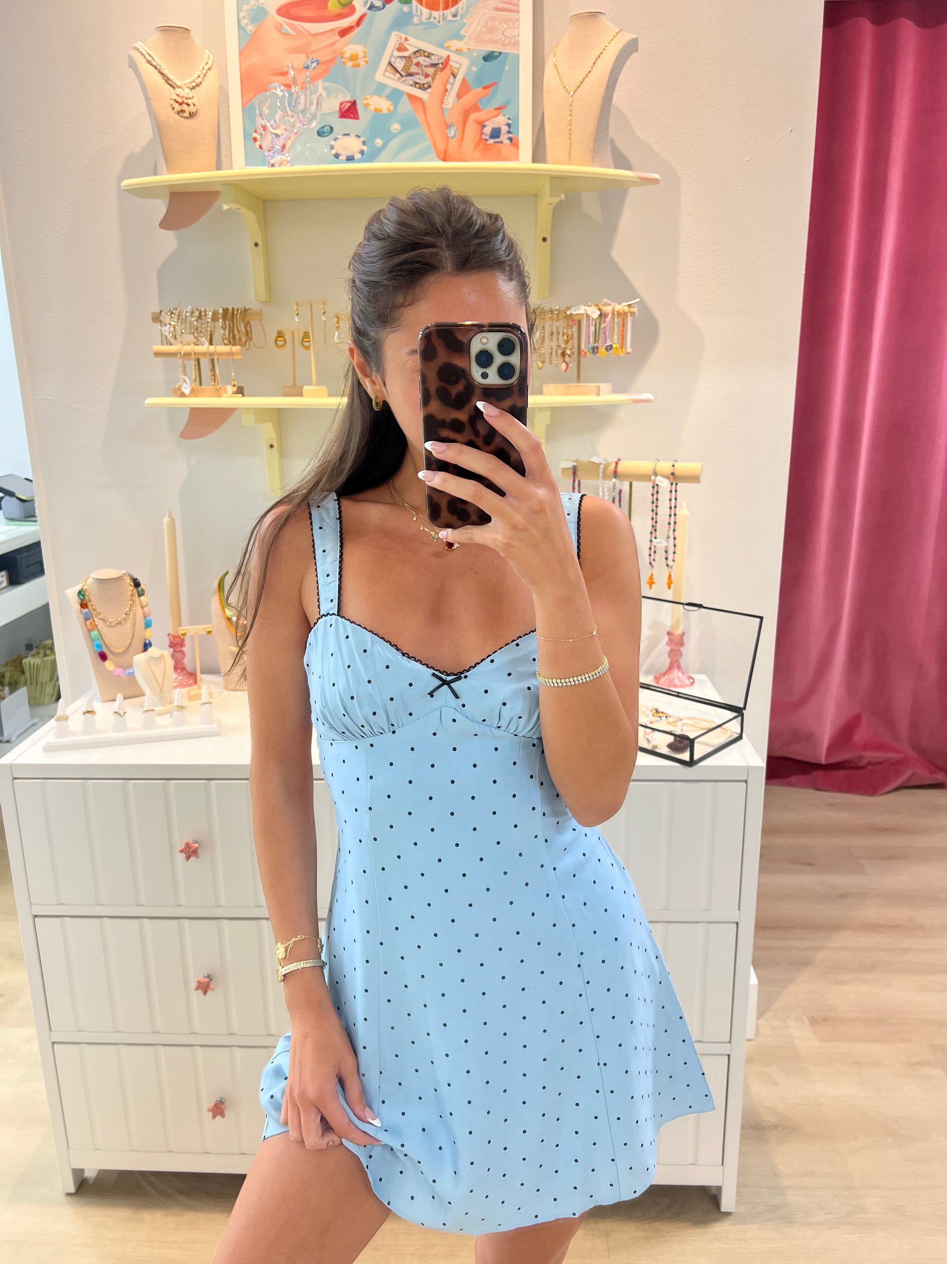 Bailey Polka Dot Mini Dress - Blue