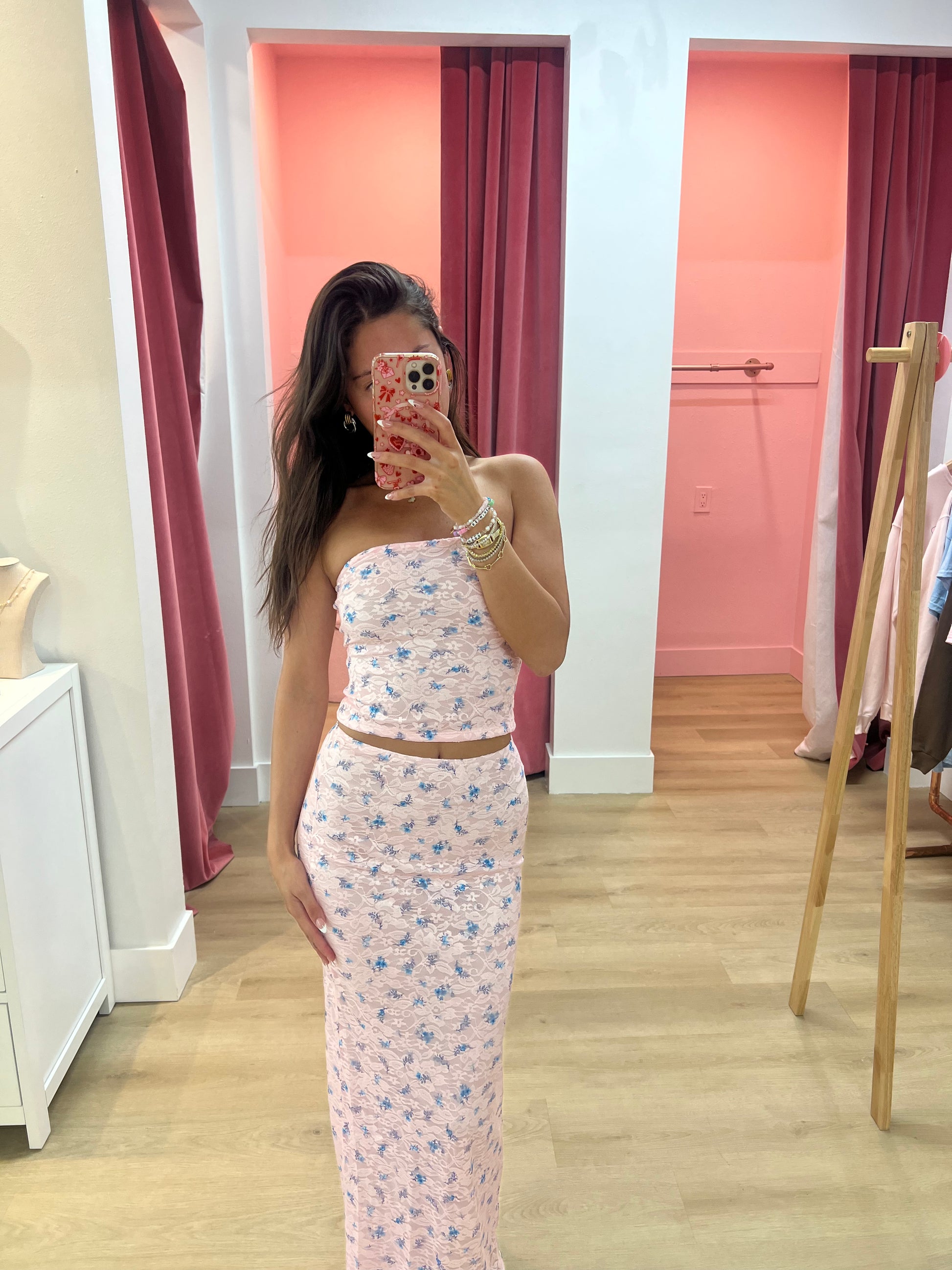 Dahlia Strapless Floral Lace Set - Pink