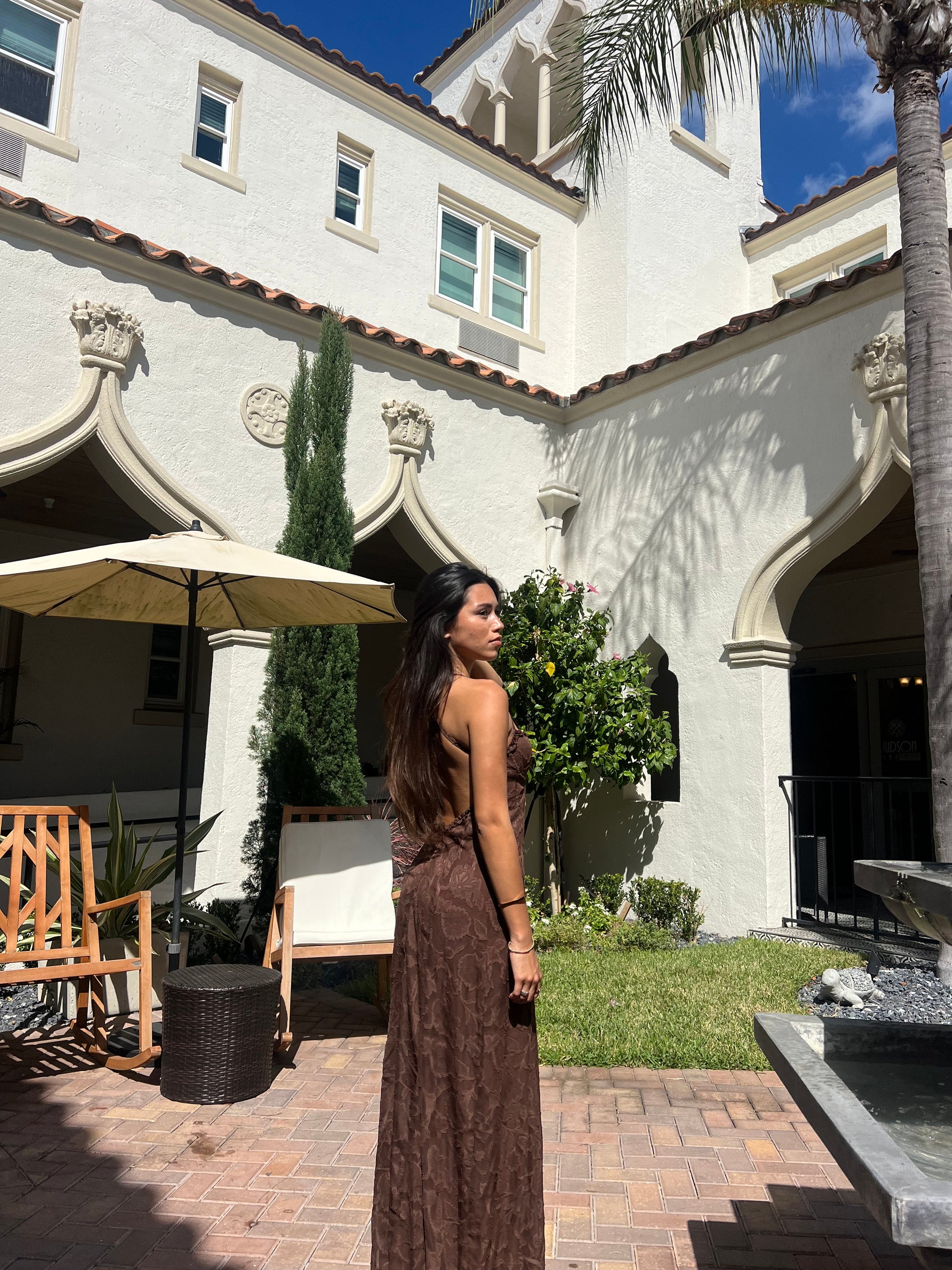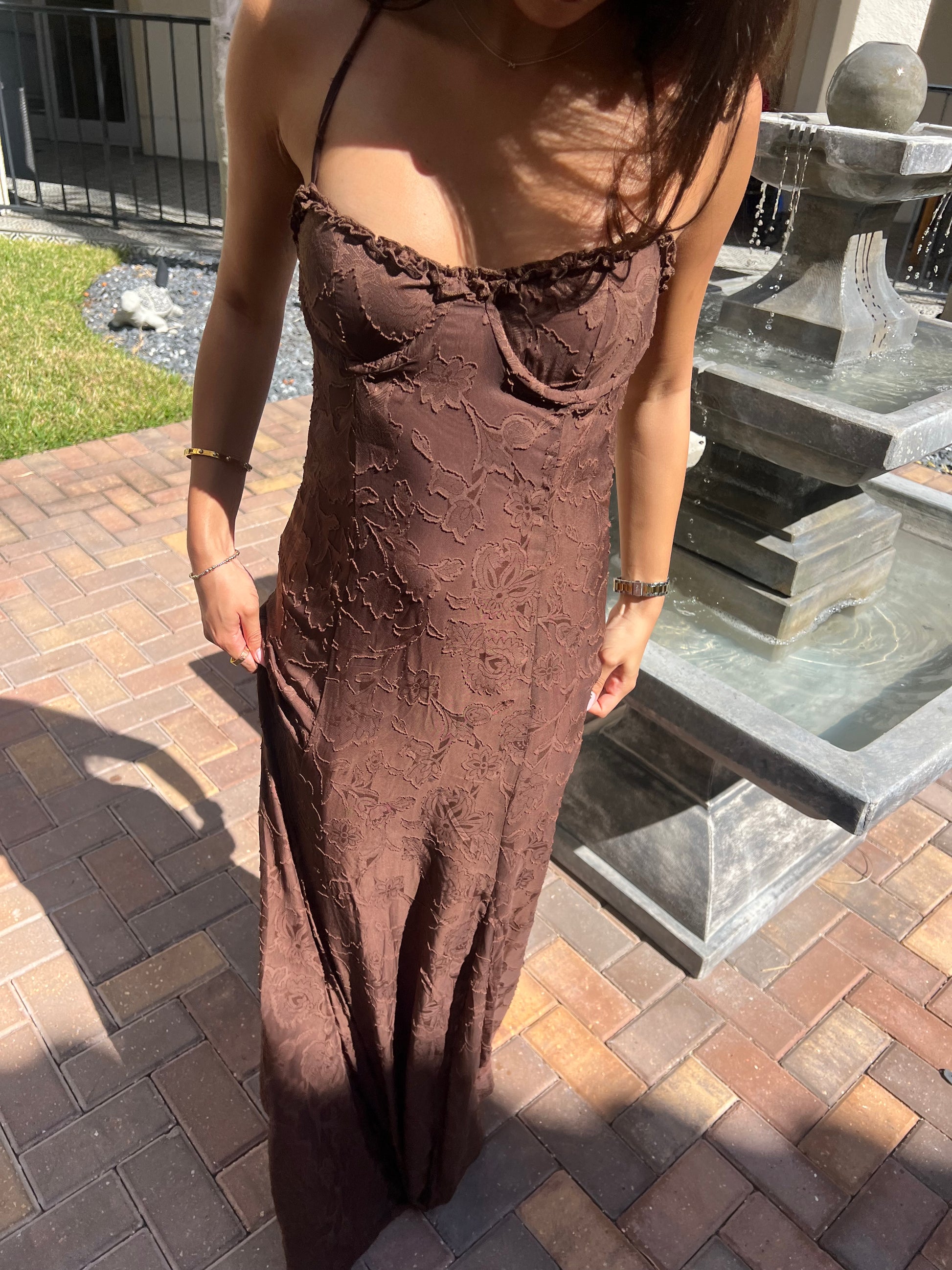 ELLERBY FRILL TRIM MAXI DRESS - CHOCOLATE