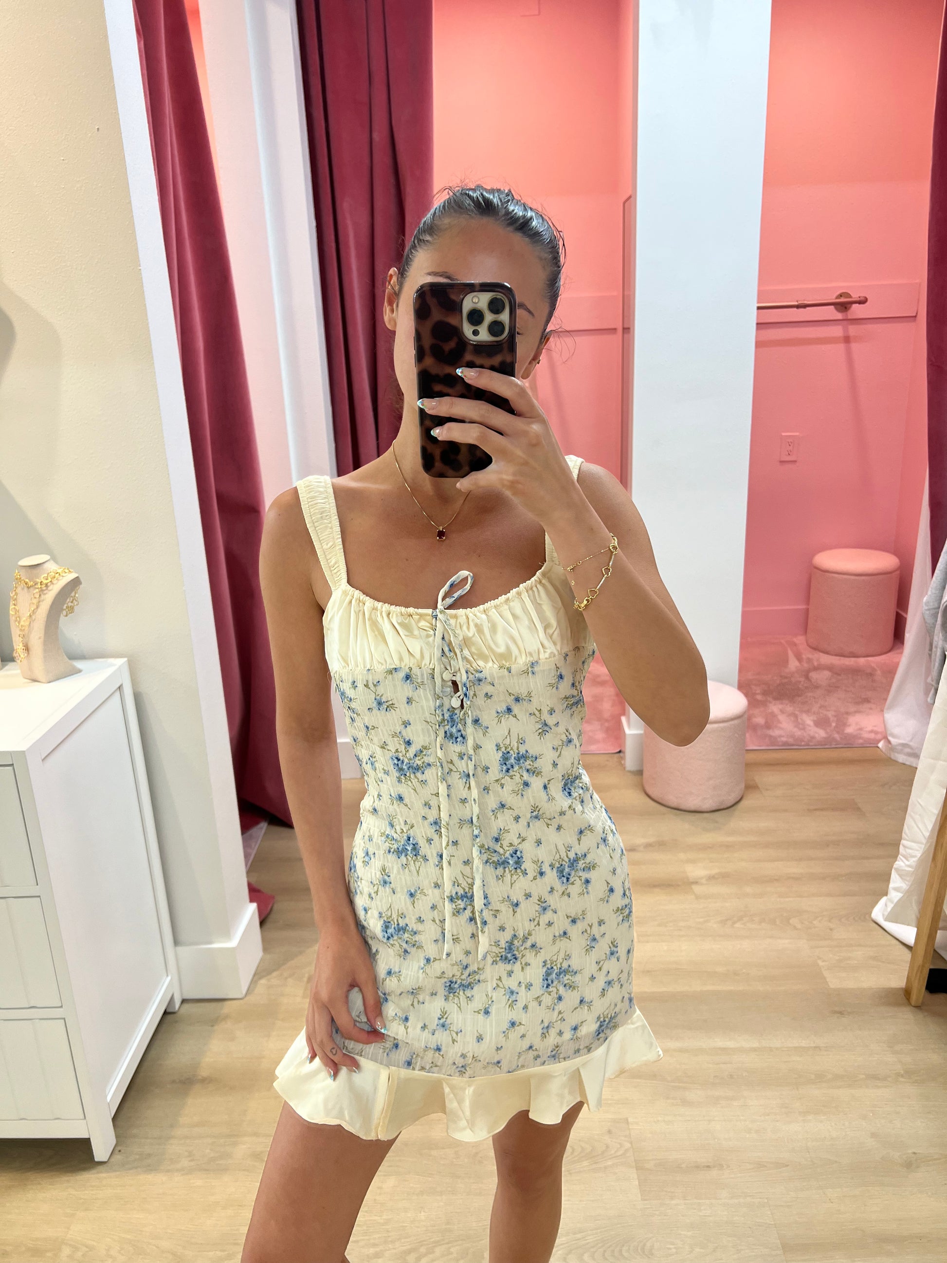 FLORAL PLEATS WOVEN MINI DRESS