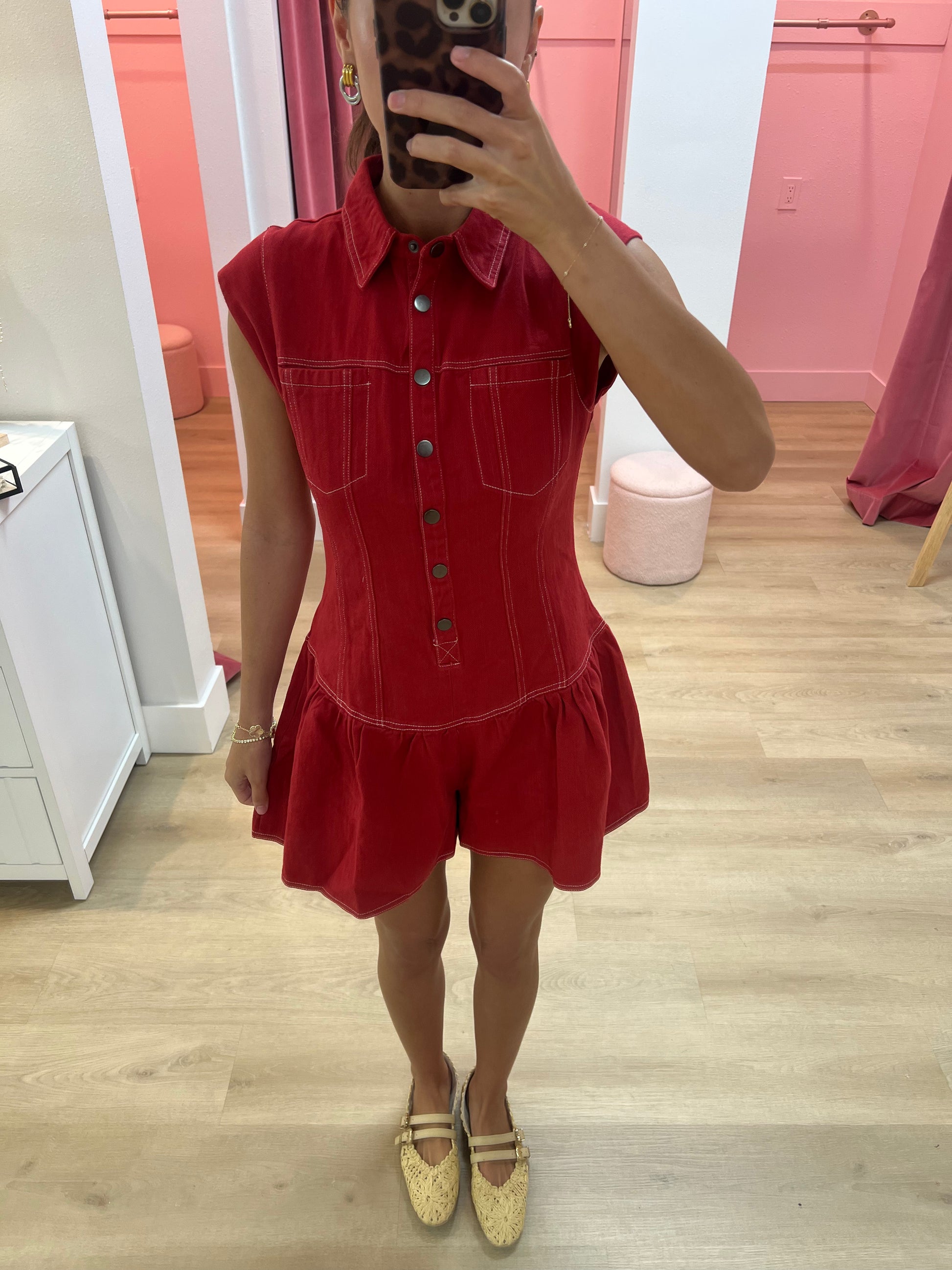 Raelynn Sleeveless Red Denim Romper