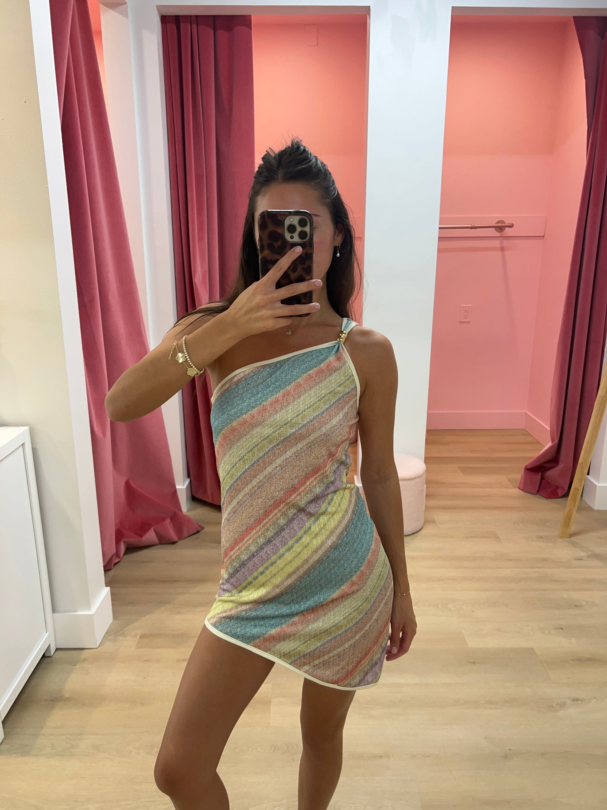 Sienna One-Shoulder Striped Dress - Pink