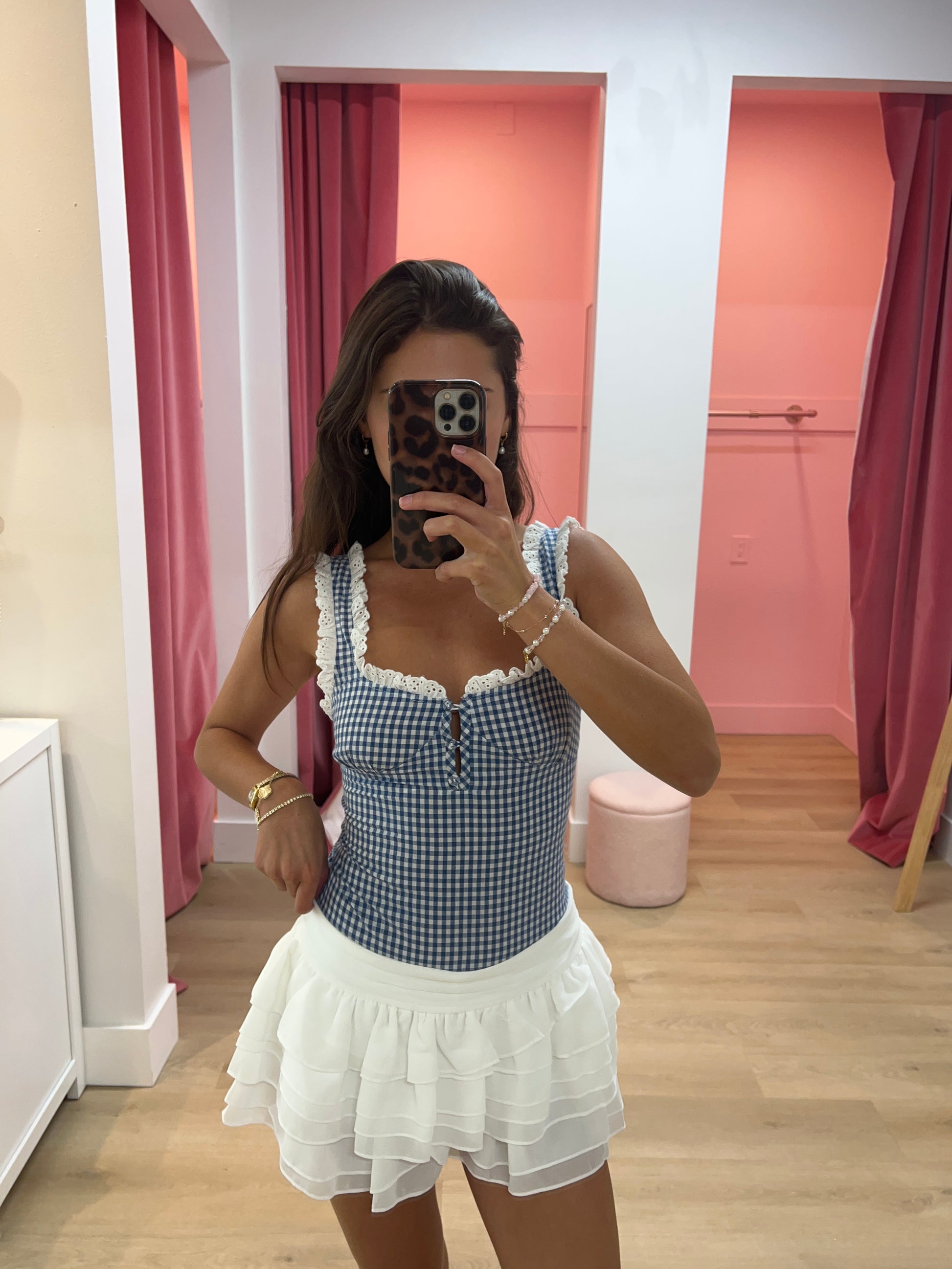 Tara Gingham Eyelet Bodysuit - blue